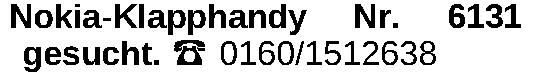Nokia-Klapphandy Nr. 6131 gesucht. ‡ 0160/1512638Kontakt