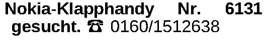 Nokia-Klapphandy Nr. 6131 gesucht. ‡ 0160/1512638Kontakt