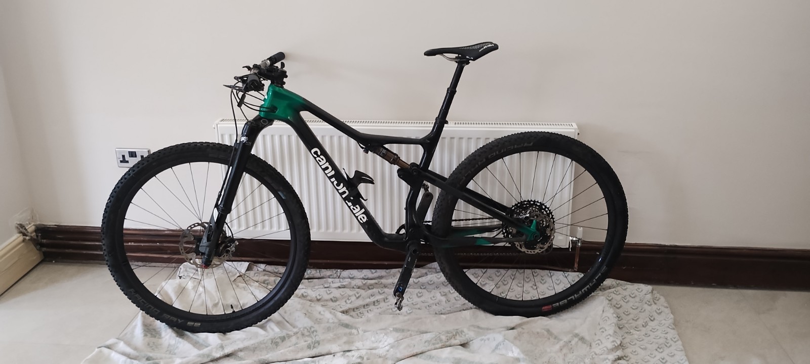Es handelt sich um das Topmodell der Weltcup-Rennserie mit Vollcarbon-Lefty-Gabel, breiten Carbonlaufrädern, Hi-Mod-Carbonrahmen und Enve-Komponenten. Das gleiche Rad, das auch Herr Hatherley fährt.