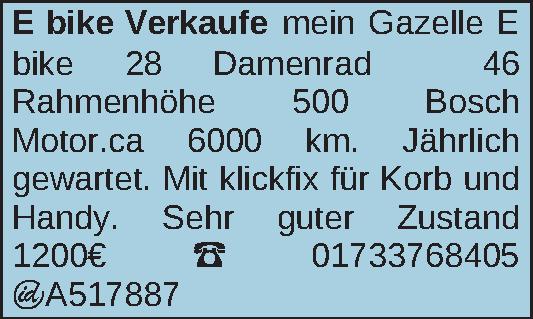 Erscheinungsdatum: Anzeige vom 21.4.2026 in der Rubrik "Fahrräder und Zubehör"