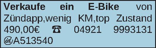 Verkaufe ein E-Bike von Zündapp,wenig KM,top ZustandKontakt