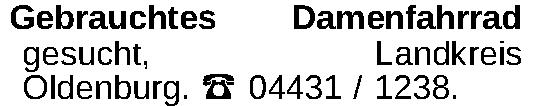 Gebrauchtes Damenfahrrad gesucht, Landkreis Oldenburg. 04431 / 1238.