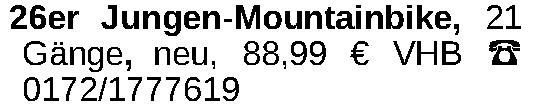 26er Jungen-Mountainbike, 21 Gänge, neu, 88,99 € VHB 0172/1777619