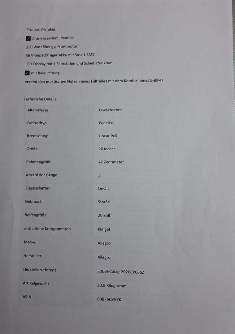 Anzeigentitel: Pedelec E Bike, Klapprad