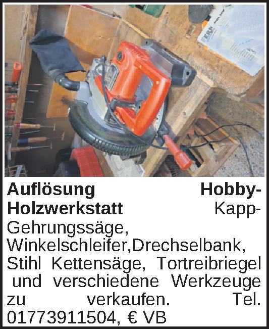 Anzeigentitel: Auflösung Hobby-Holzwerkstatt