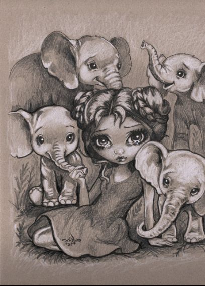 Anzeigentitel: Baby Elefanten ORIGINAL ZEICHNUNG Jasmin Becket-Griffith