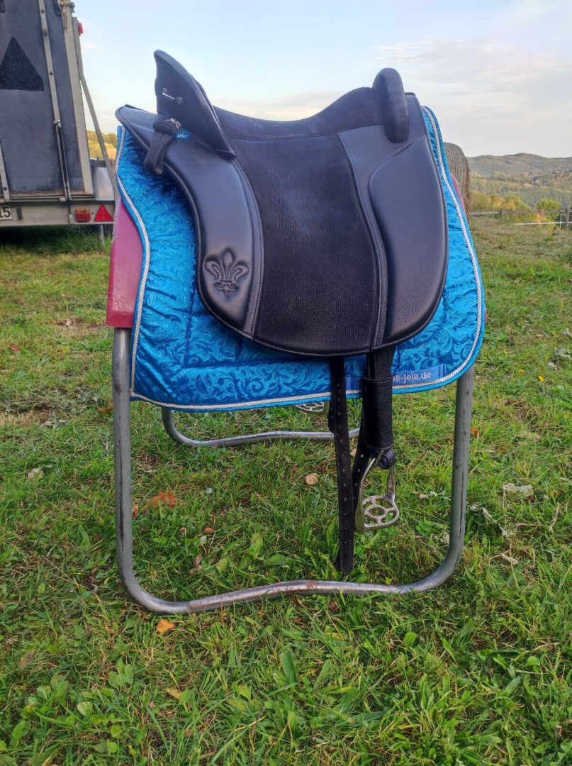 Verkaufe meinen wunderschönen Ibero Verano aufgrund von Umstieg. Er hat Sitzgröße S3 und wird komplett mit Sattelschoner, Sattelgurt (Größe 3), Steigbügeln und Steigbügelriemen verkauft (alles von Deuber). Sattelpass vorhanden. Der Sattel wurde 02/22 gekauft und nur wenig genutzt, hat sich noch nicht gesetzt und ist daher fast neu. Garantie noch vorhanden.Ibero Verano - ein auffallend schöner Barocksattel der aus doubliertem Nubukleder mit eleganter Ziersteppung gefertigt wird.