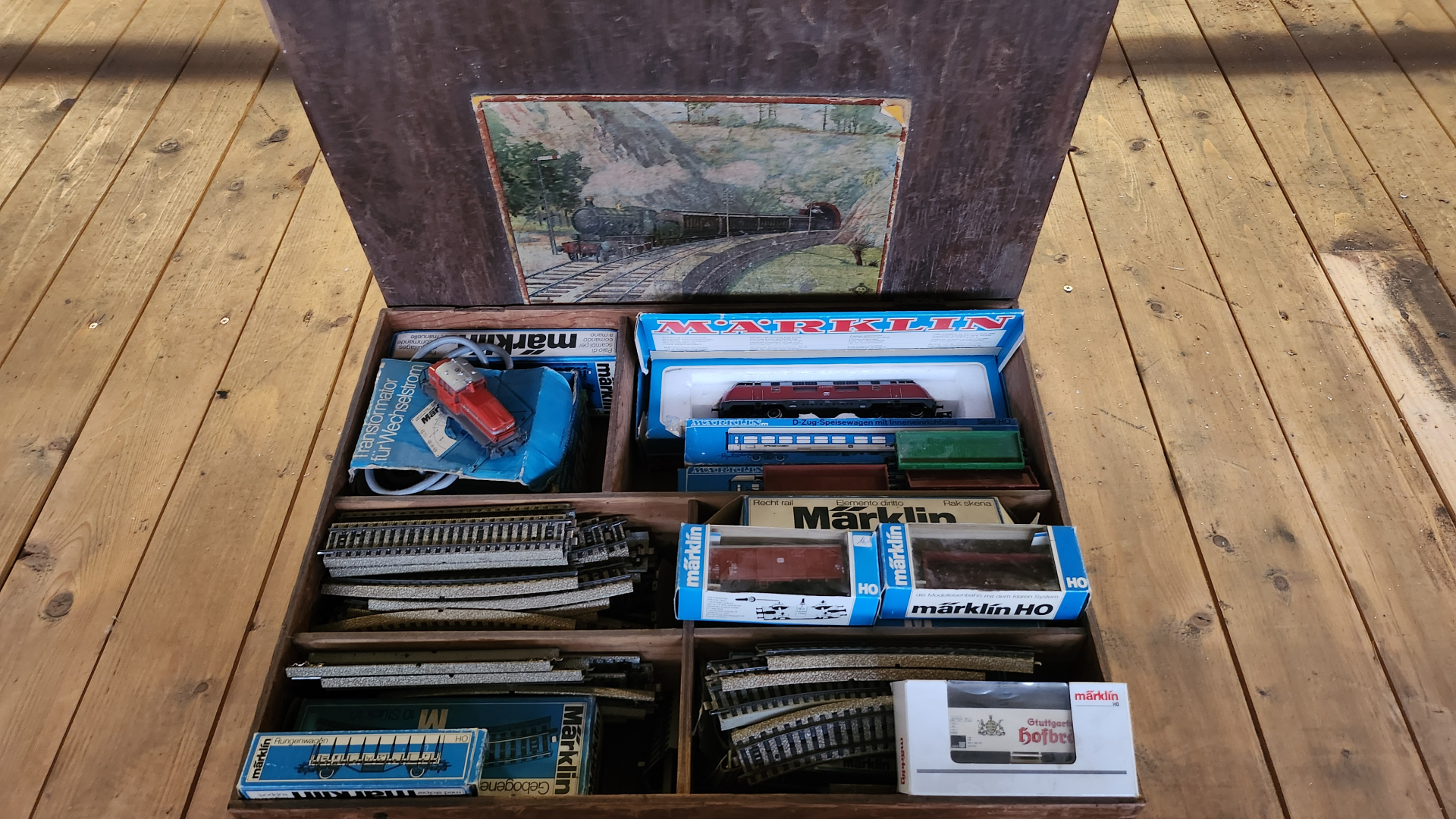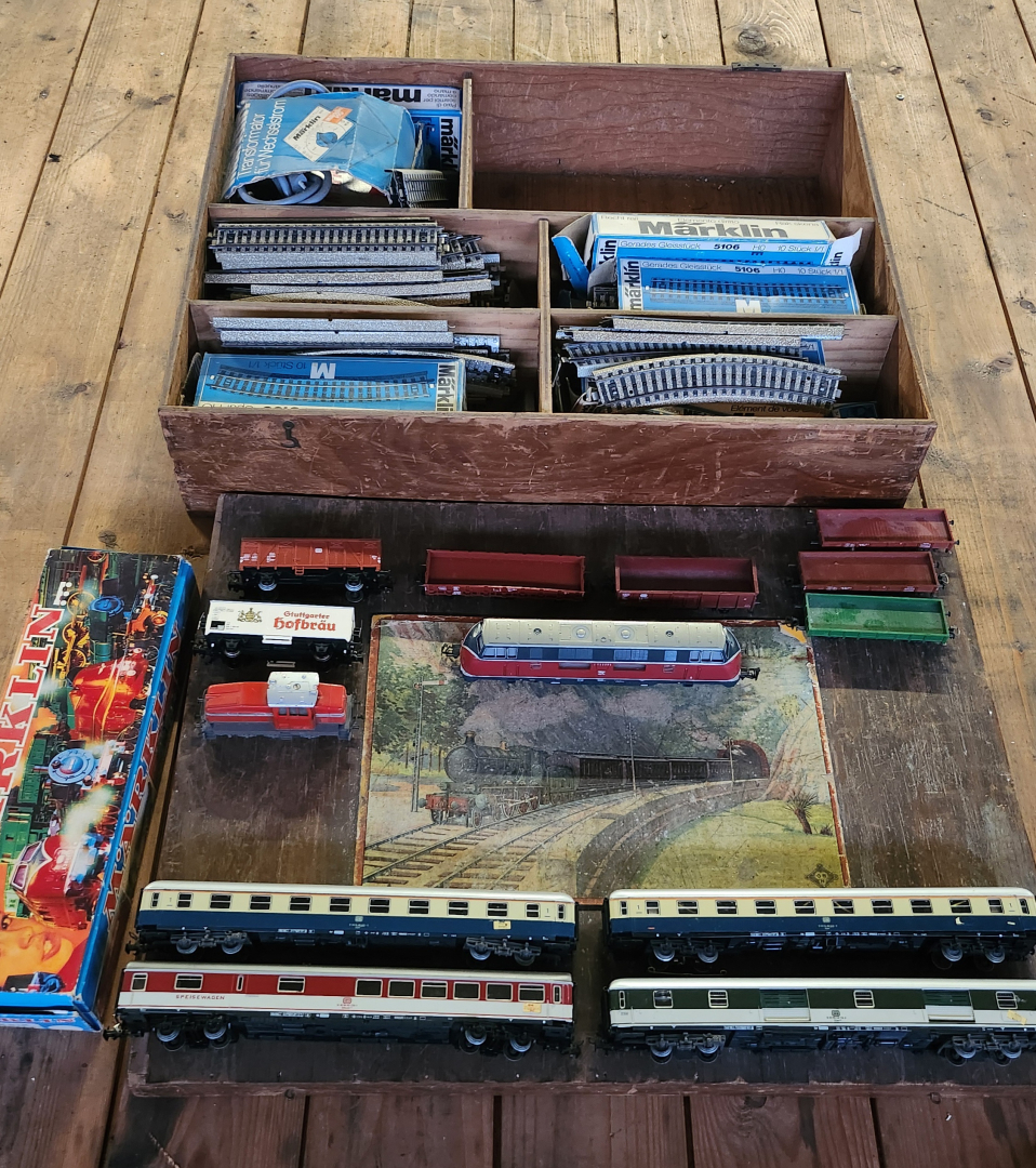 Ich verkaufe meine Märklin Eisenbahn HO von 1976. 2 Loks mit div. Anhängern und Schienen im rustikalen Holzkasten. Tel. 01739572422 nur Abholung.