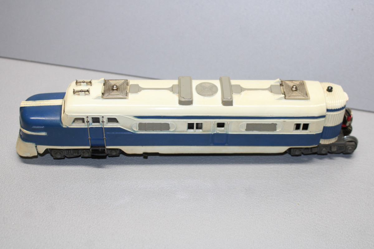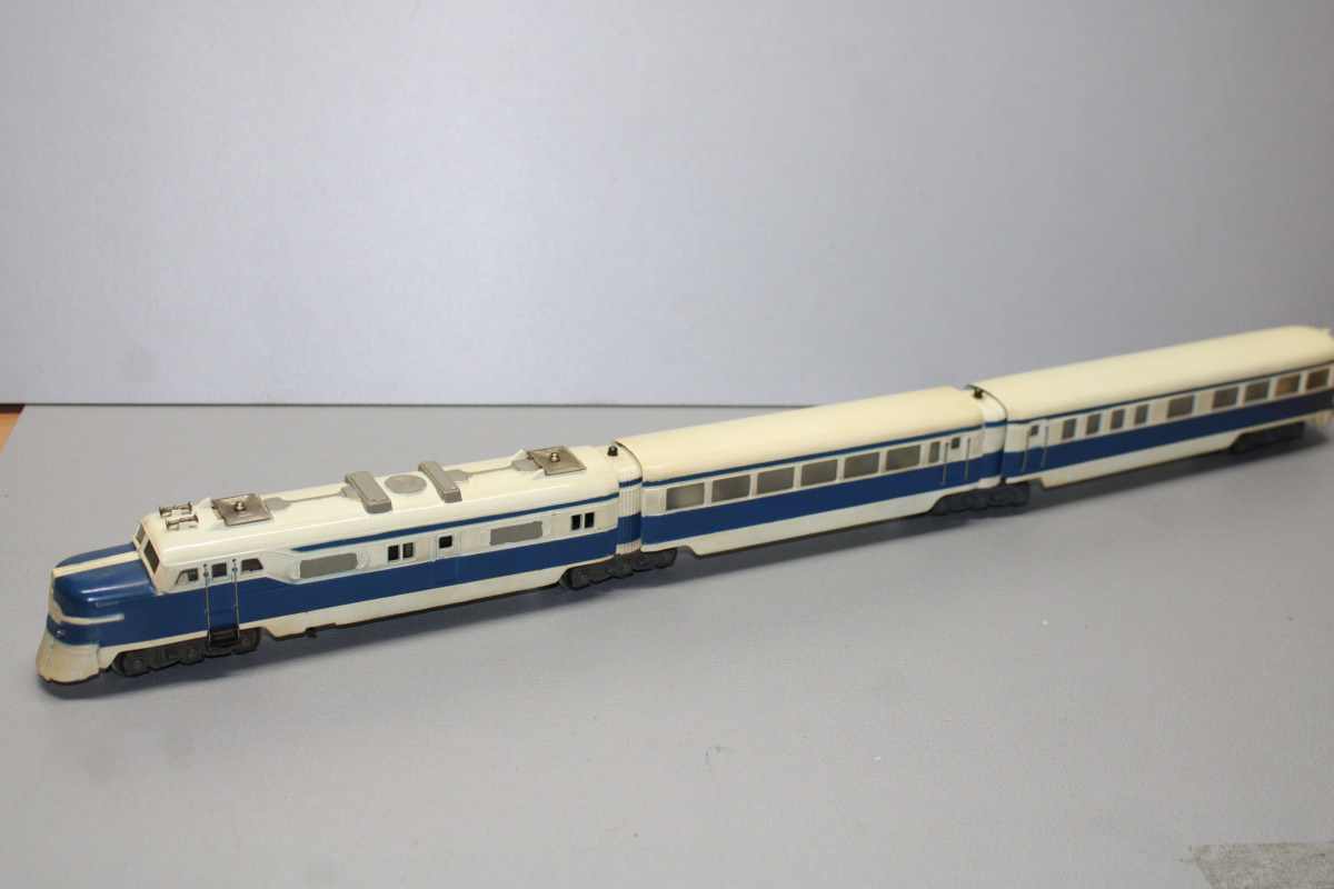 Eine Wechselstrom Lokomotive der Spur H0.Es ist eine Märklin ST 800 B Schnelltriebwagen blau/ beige Spur H0.