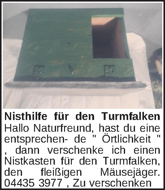Anzeigentitel: Nisthilfe für den Turmfalken