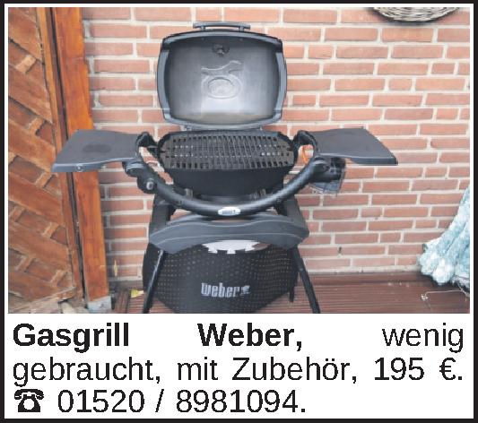 Gasgrill Weber, wenig gebraucht, mit Zubehör, 195 €. ‡ 01520 / 8981094.Kontakt