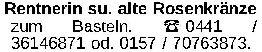 Rentnerin su. alte Rosenkränze zum Basteln. 0441 / 36146871 od. 0157 / 70763873.