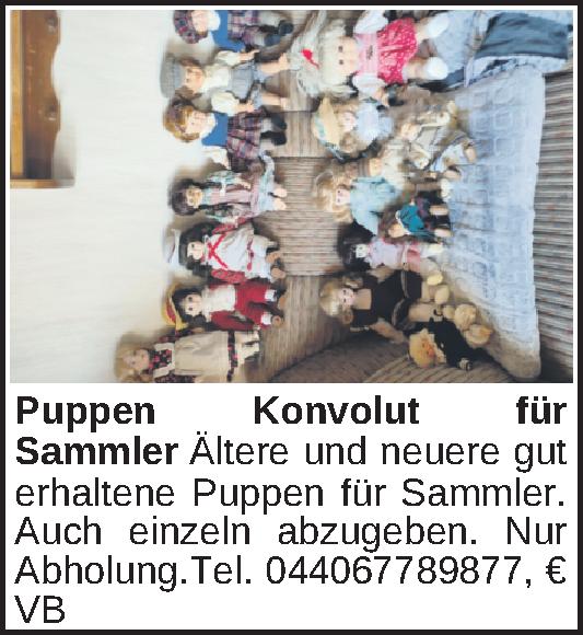 Ältere und neuere gut erhaltene Puppen für Sammler. Auch einzeln abzugeben. Nur Abholung.Tel. 044067789877Kontakt