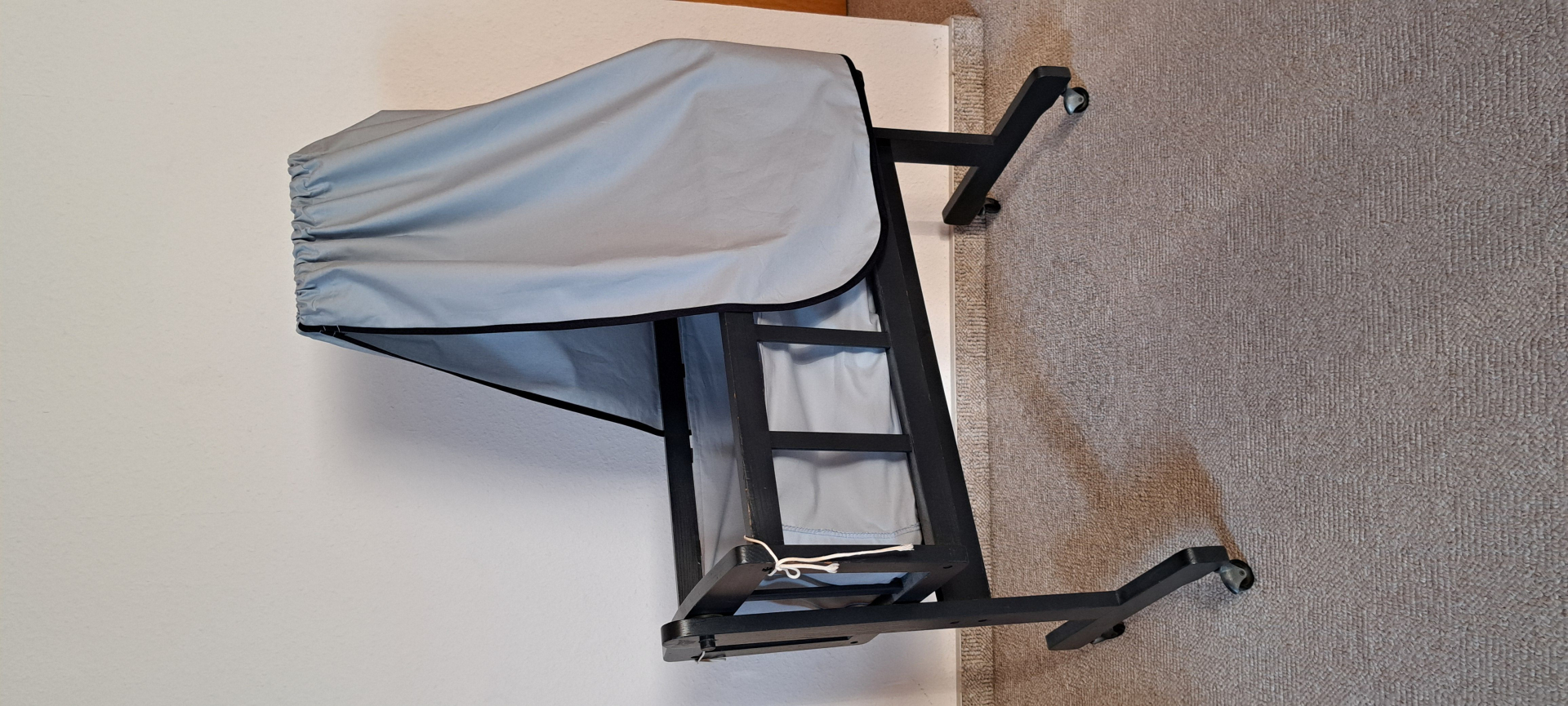 Ein Weihnachtsgeschenk: Puppenwiege, grau, mit hellblauem Himmel und InnenauskleidungTel. 0441-301691 (AB)