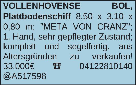 Anzeigentitel: VOLLENHOVENSE BOL, Plattbodenschiff