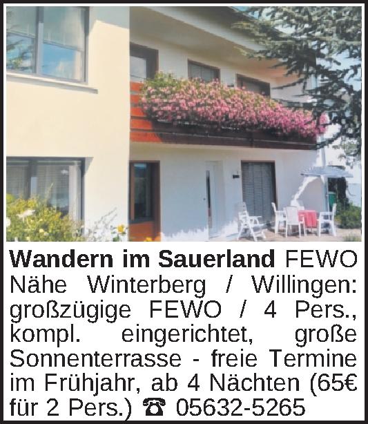 FEWO Nähe Winterberg / Willingen: großzügige FEWO / 4 Pers., kompl. eingerichtet, große Sonnenterrasse - freie Termine im Frühjahr, ab 4 Nächten (65€ für 2 Pers.)