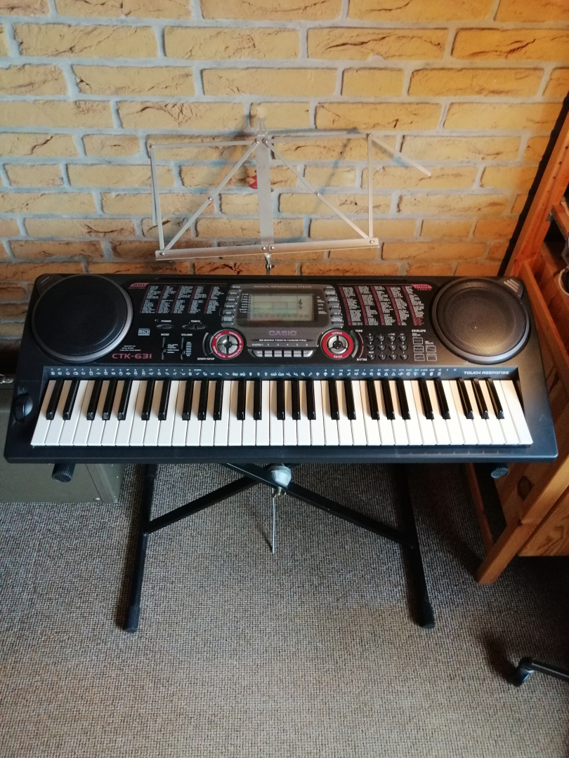 CTK-631, 200 Klangfarben, 100 Rhythmen, int. Speicher, Ständer.10 Notenhefte bekannter Schlager können zusätzl. für 25,- € erworben werden.