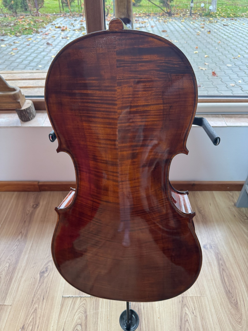 Zum Verkauf steht ein 7/8-Cello, Modell Stradivari Gore Booth, gefertigt von Dumitru Pop. Baujahr: 2025. Zuverlässiger, sehr ausgewogener Klang mit warmen und vollen Bässen. Ausstattung: Jargar Classic Saiten, Akusticus Saitenhalter, Roth & Junius Endknopf, Ebenholzwirbel.Kontakt