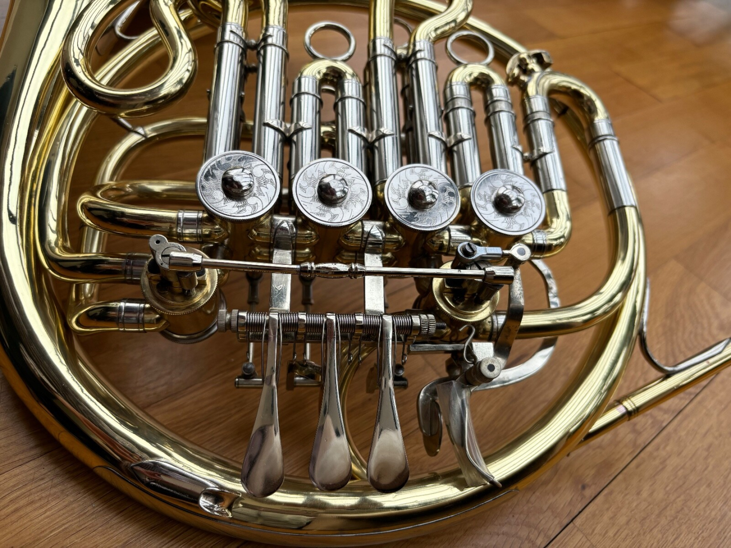 Das Horn ist von 1978 und in sehr gutem Zustand. Es ist generalüberholt, neu lackiert und die Ventile sind dicht. Das Schallstück ist nicht abschraubbar. Das Horn verkaufe ich mit dem Originalkoffer von Alexander.Kontakt:hanatfarpal@freenet.de