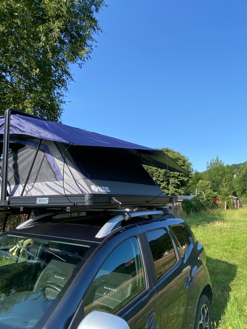 Montiert ist es auf einem Dacia Duster. Die Träger sollten mindestens 75 kg Tragkraft aushalten. Wir hatten keine Problem mit dem Dacia Duster.