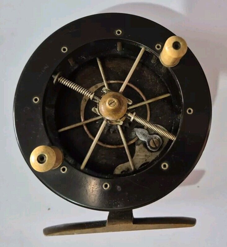 Diese Vintage-Rolle Allcocks Coxon Aeriel 4104-T2 mit 3 1/2 Zoll stammt aus den Jahren 1896–1905 und ist ein seltener Fund für Angelfreunde. Diese im Vereinigten Königreich hergestellte Single-Action-Rolle verfügt über ein 4-Speichen-Design und ist ideal zum Friedfischangeln mit einem maximalen Schnurgewicht von 6 lb. Mit ihrer reichen Geschichte und Handwerkskunst ist diese Allcocks-Rolle ein Sammlerstück für alle, die sich für Vintage-Angelausrüstung interessieren.Kontakt