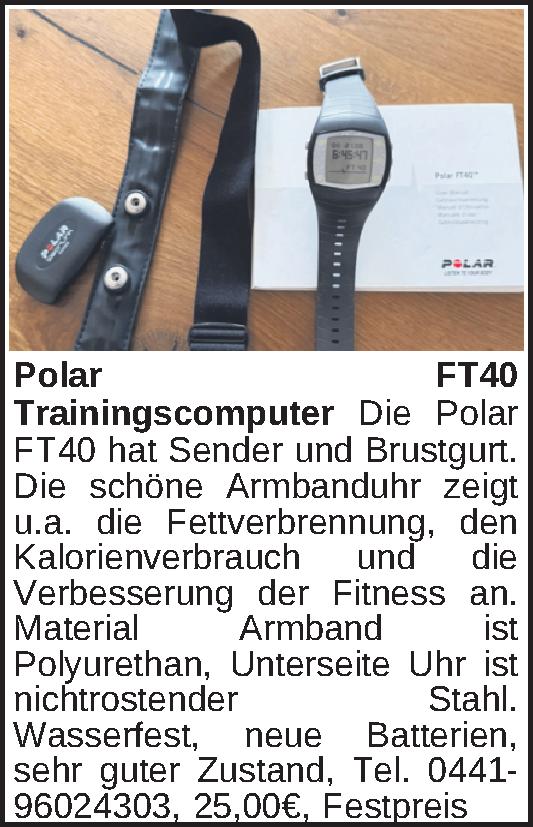 Anzeigentitel: Polar FT40 Trainingscomputer