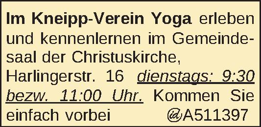 Anzeigentitel: Im Kneipp-Verein Yoga erleben und kennenlernen.