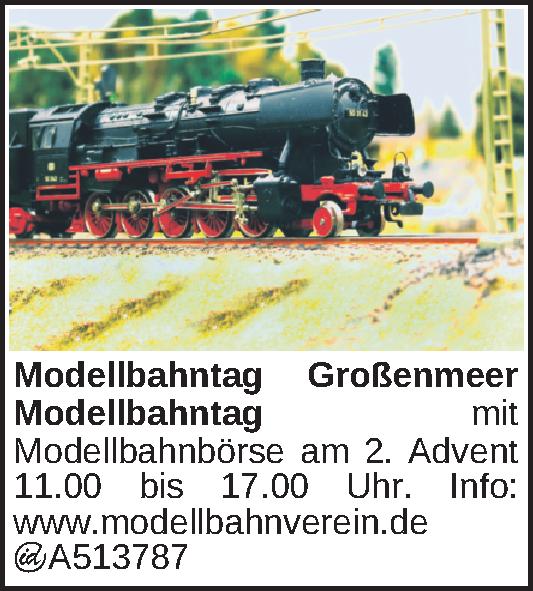 Modellbahntag mit Modellbahnbörse am 2. Advent 11.00 bis 17.00 Uhr. Info: www.modellbahnverein.de