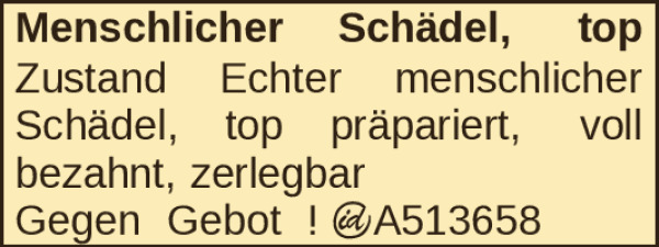 Anzeigentitel: Menschlicher Schädel, top Zustand