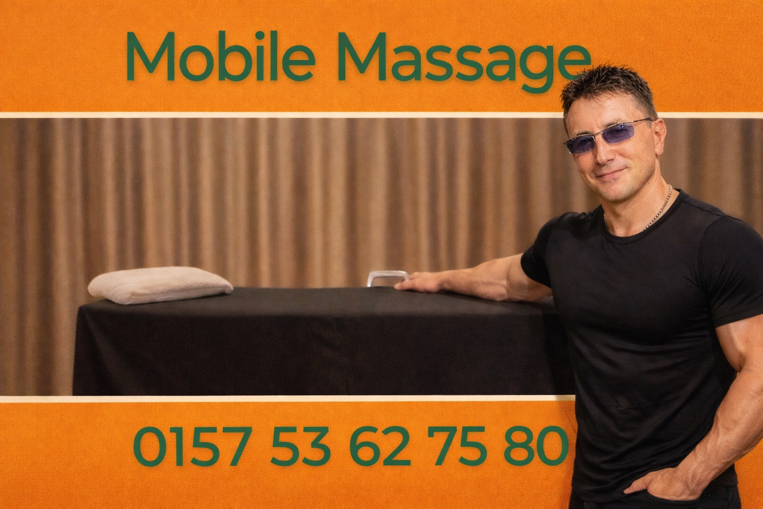 Massageliege und Öl vorhanden. Fahrkosten im Preis inbegriffen.