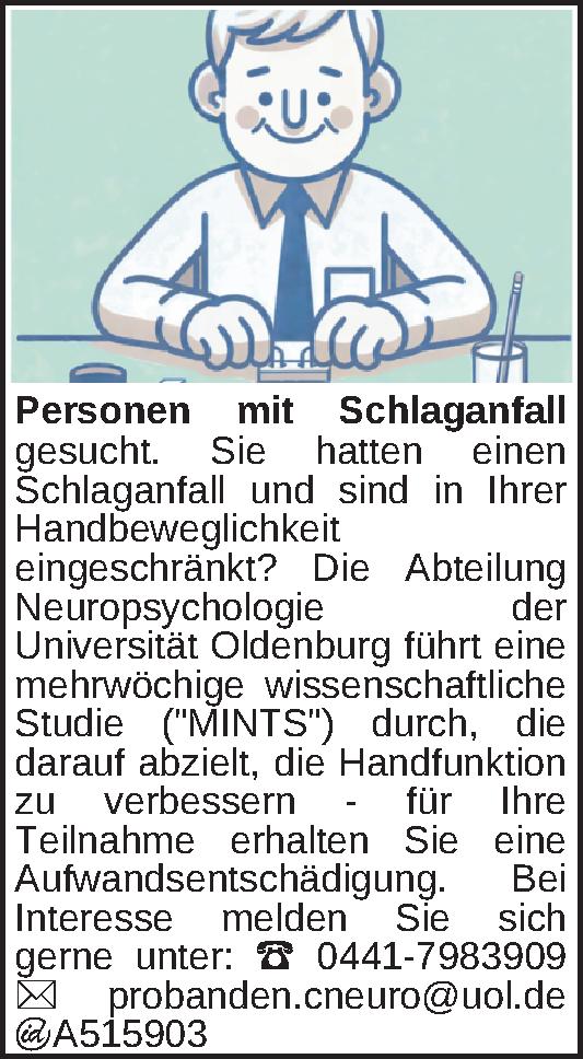 Anzeigentitel: Personen mit Schlaganfall gesucht