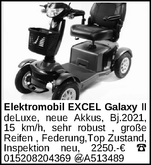 Anzeigentitel: Elektromobil EXCEL Galaxy II deLuxe, neue Akkus, Bj.2021,