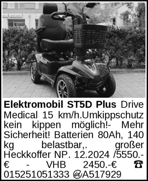 Anzeigentitel: Elektromobil ST5D Plus Drive Medical 15 km/h.Umkippschutz