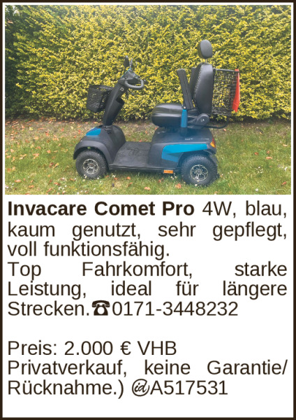 Invacare Comet Pro 4W, blau, kaum genutzt, sehr gepflegt, voll funktionsfähig.