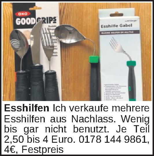 Ich verkaufe mehrere Esshilfen aus Nachlass.