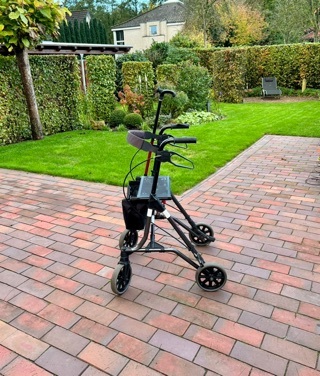 Sehr gepflegt, da wenig benutzt, bis 150 kg belastbar, inklusive Rückenbügel, Ergogriffe, Einkaufsnetz, Gestockhalter, einfach faltbar, steht auch in gefaltetem Zustand, mit Ankipphilfe, Lenkungsdämpfer für mehr Komfort, Stock nicht inklusive!klaus