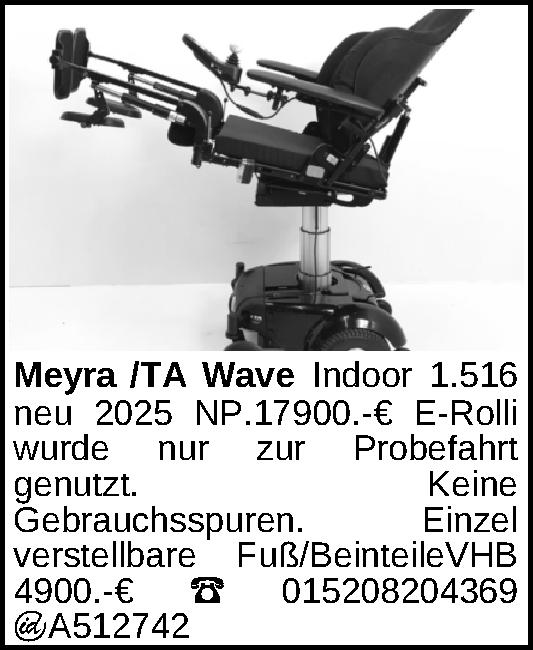 Anzeigentitel: Meyra /TA Wave Indoor 1.516 neu 2025 NP.17900.-€ E-Rolli