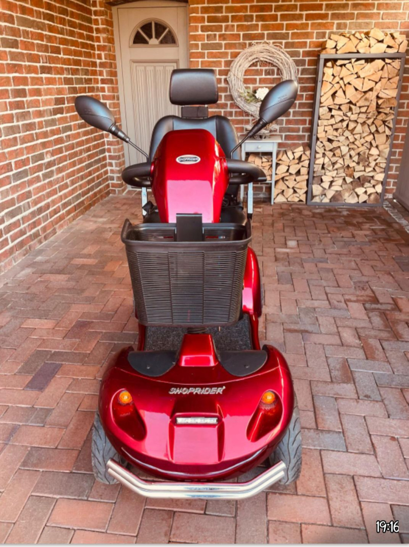 Verkaufe einen roten Shoprider Elektromobil , nur 95 km gelaufen, in neuwertigem Zustand.