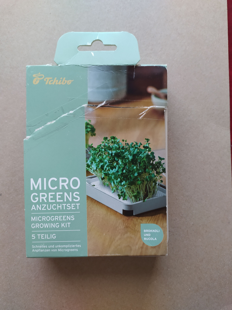 Ein Anzuchtset für Kräuter und Gemüse .Beigefügt sind Samenkörner für Rucola und für Brokkoli . War Teil eines Adventskalender , kam aber nicht so gut an wie erwartet .
