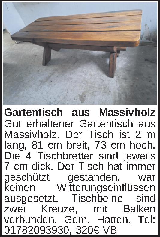 Anzeigentitel: Gartentisch aus Massivholz