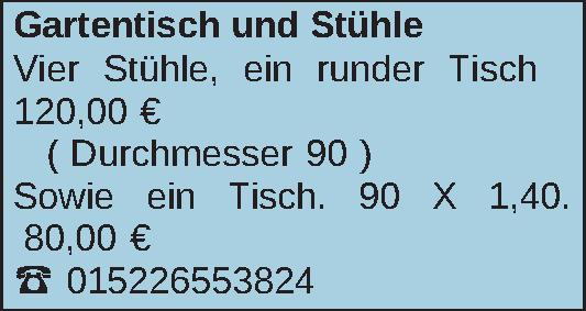 Anzeigentitel: Gartentisch und Stühle