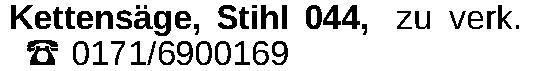 Kettensäge, Stihl 044, zu verk. ‡ 0171/6900169Kontakt