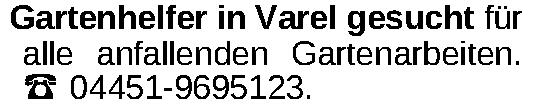 Gartenhelfer in Varel gesucht für alle anfallenden Gartenarbeiten. 04451-9695123.