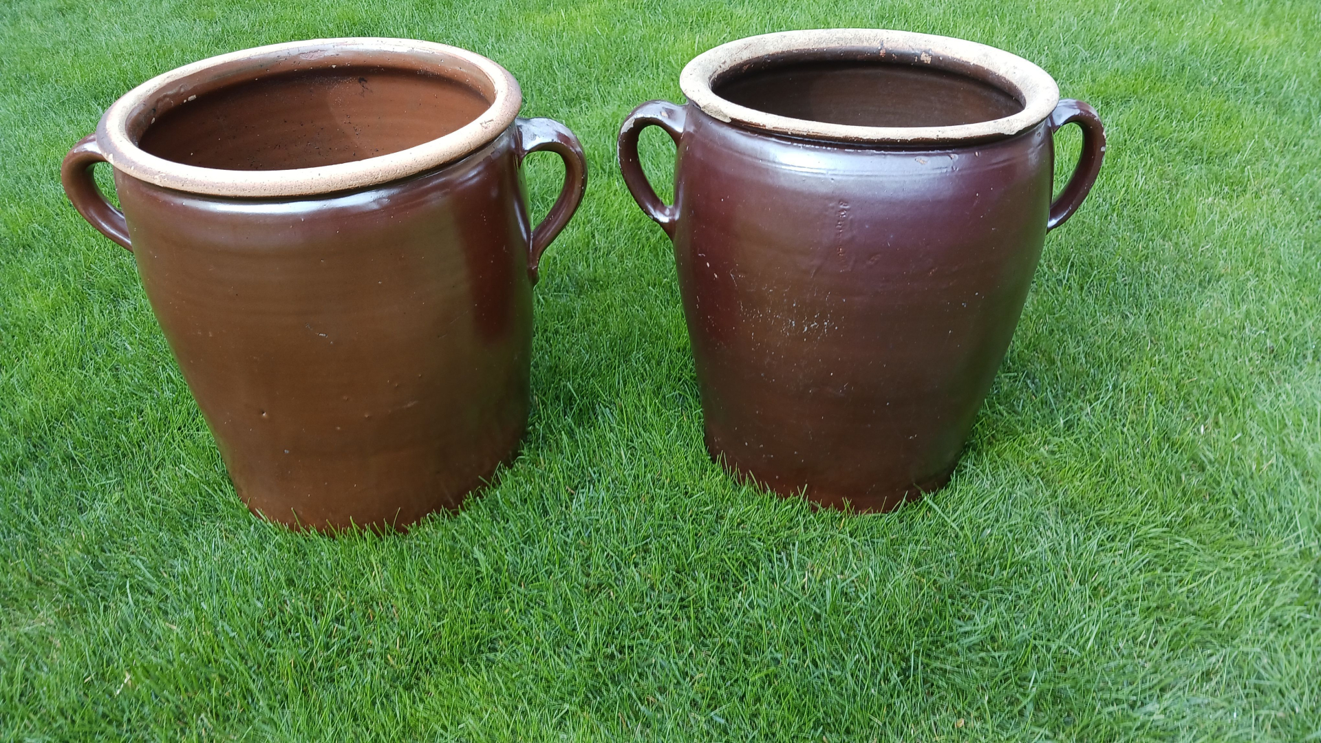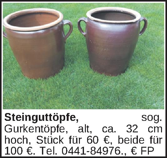 sog. Gurkentöpfe, alt, ca. 32 cm hoch, Stück für 60 €, beide für 100 €. Tel. 0441-84976.Kontakt