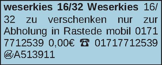 Weserkies 16/32 zu verschenken nur zur Abholung in Rastede mobil 0171 7712539Kontakt