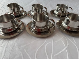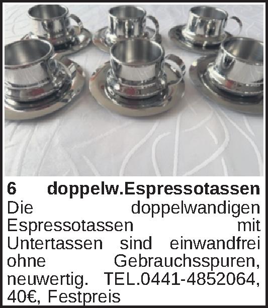 Die doppelwandigen Espressotassen mit Untertassen sind einwandfrei ohne Gebrauchsspuren, neuwertig. TEL.0441-4852064Kontakt