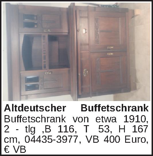 Buffetschrank von etwa 1910, 2 - tlg ,B 116,T 53, H 167 cm, 04435-3977, VB 400 Euro