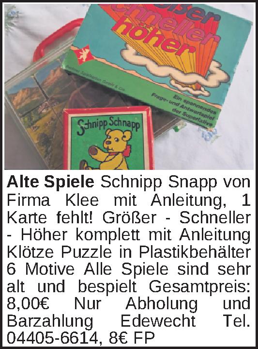 Schnipp Snapp von Firma Kleemit Anleitung, 1 Karte fehlt!