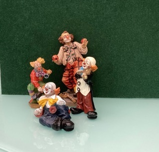 4 Handgeschnitzte Clowns ,7- 14 cm groß
