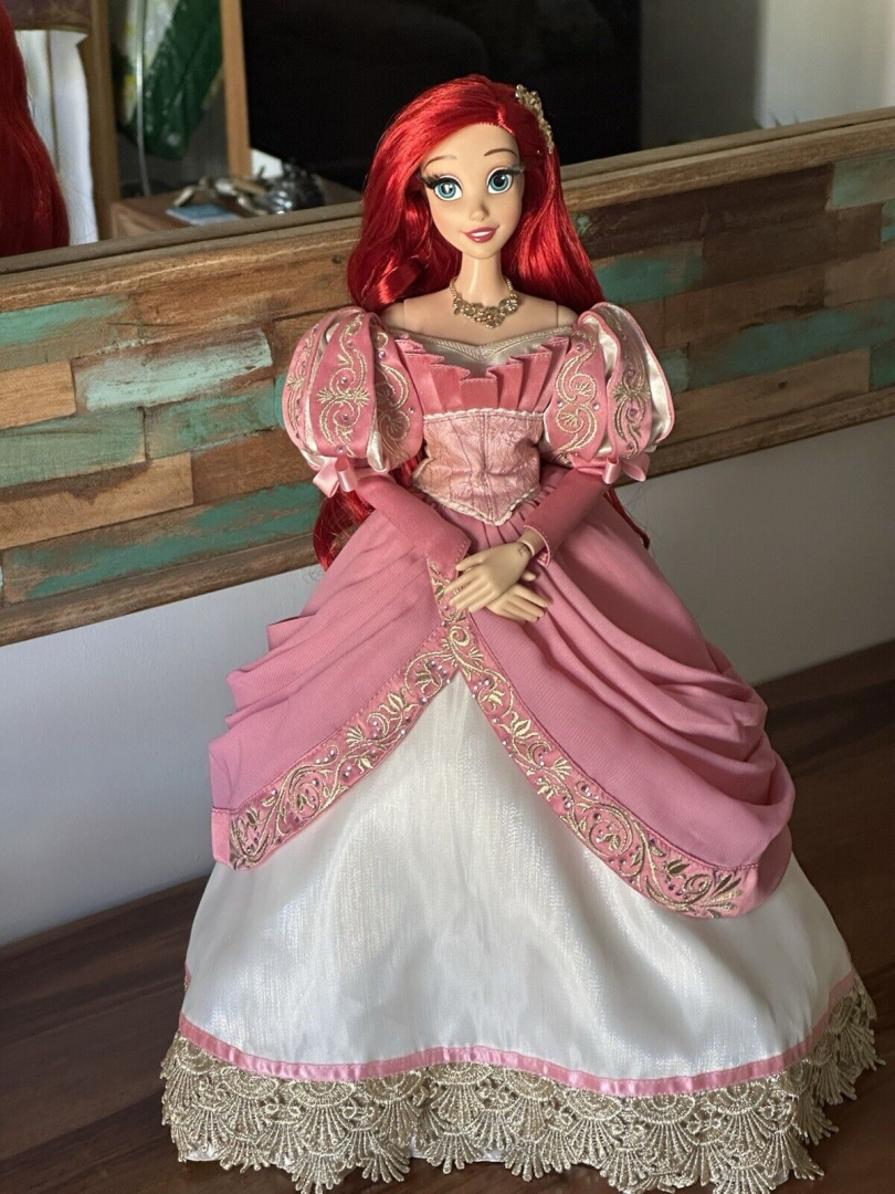Ich verkaufe die wunderschöne Arielle, die Meerjungfrau, D23, in ihrem rosa Kleid. Weltweit limitiert auf 1000 Stück. Die Puppe wurde ausgepackt und in einem Schrank aufbewahrt. Nach Zahlungseingang wird sie sorgfältig verpackt und vollversichert versendet. Box und Zertifikat sind im Lieferumfang enthalten. Die Box ist nicht in einwandfreiem Zustand, wie auf den Bildern zu sehen ist.Vielen Dank für Ihr Interesse.